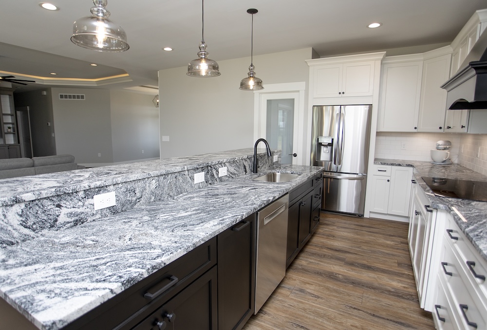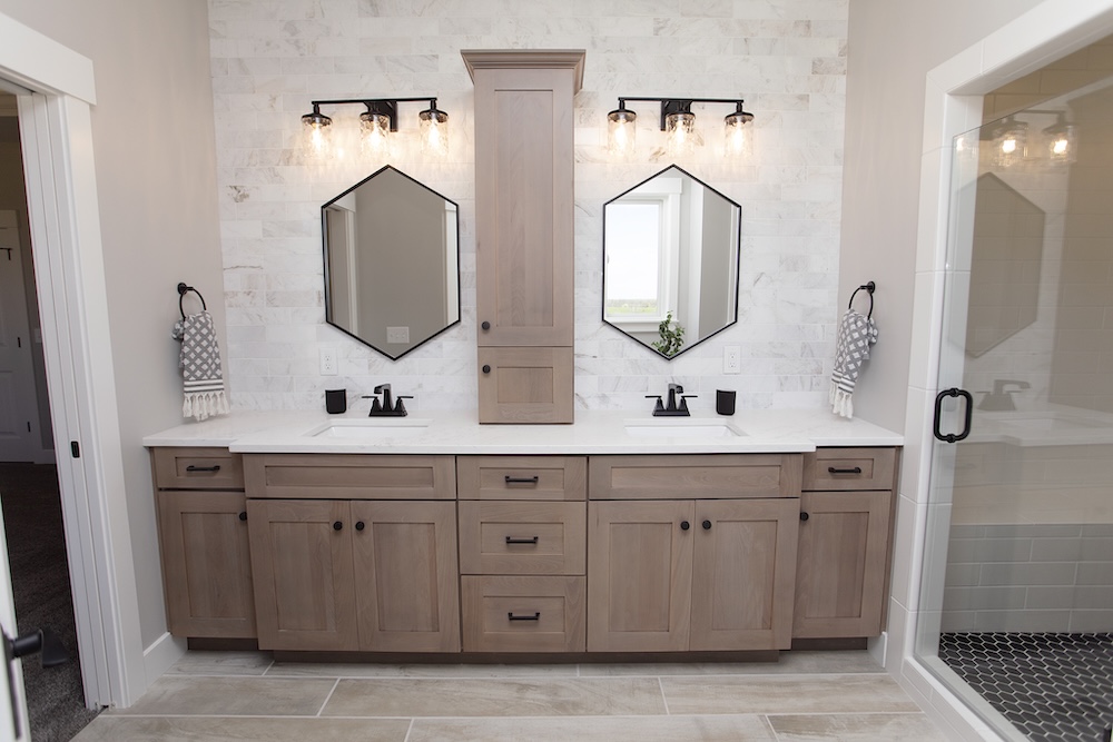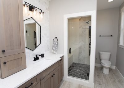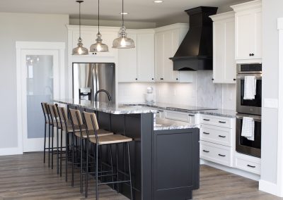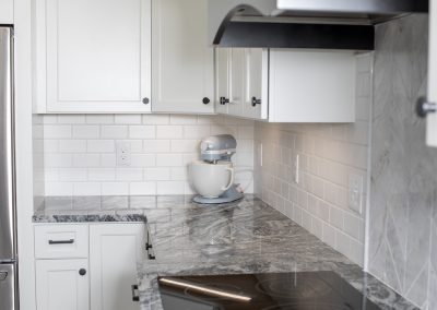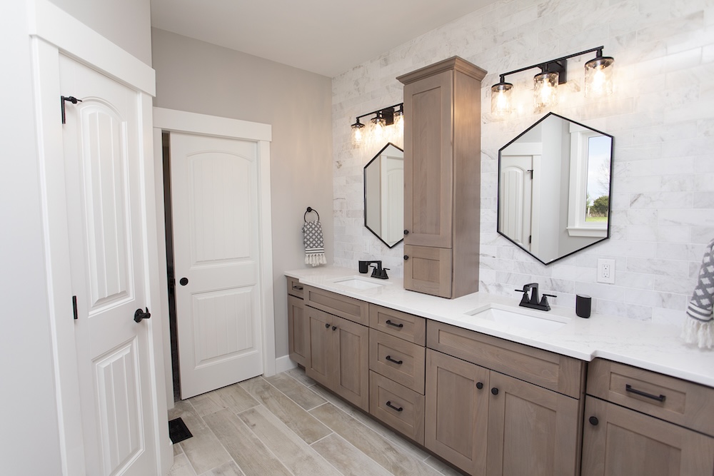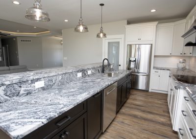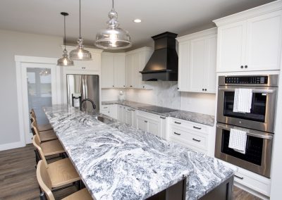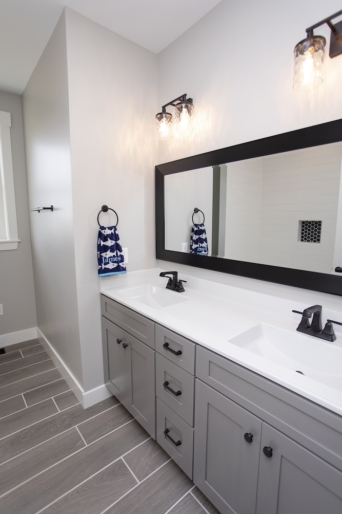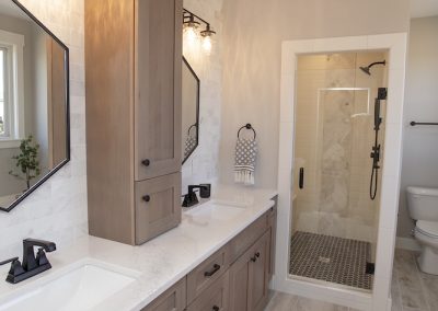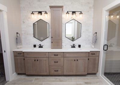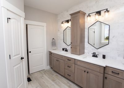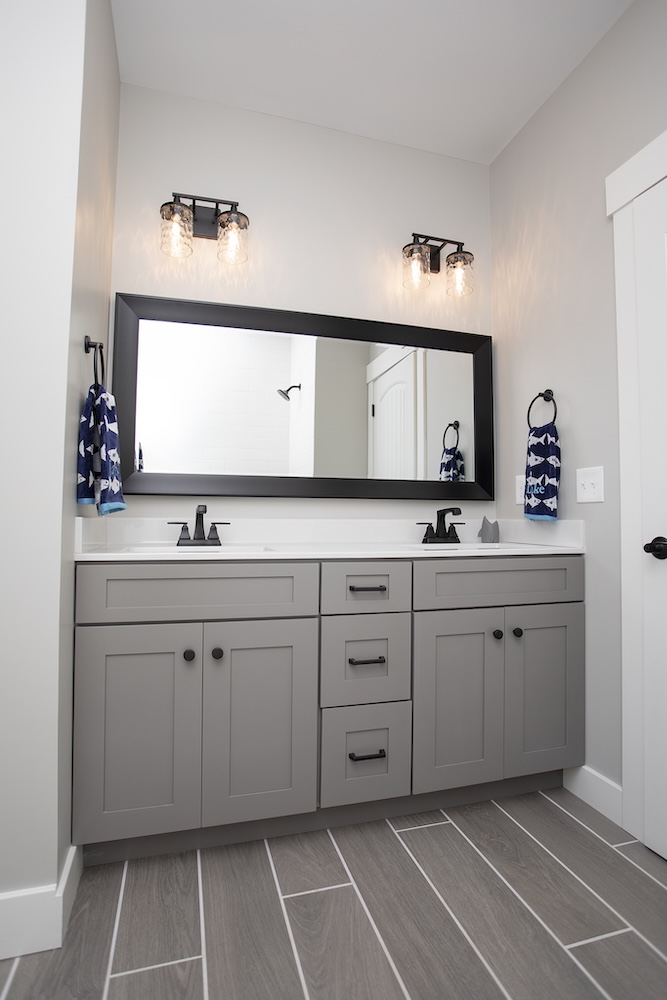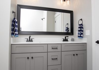 Bell Project Kitchen Cabinetry: Fabuwood – Galaxy Frost, Galaxy Pitch Back Countertops: Viscount White Granite Pantry Cabinetry: Fabuwood – Galaxy Nickle Jack and Jill Bathroom Cabinetry: Fabuwood – Galaxy Horizon