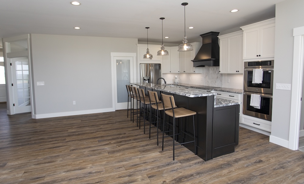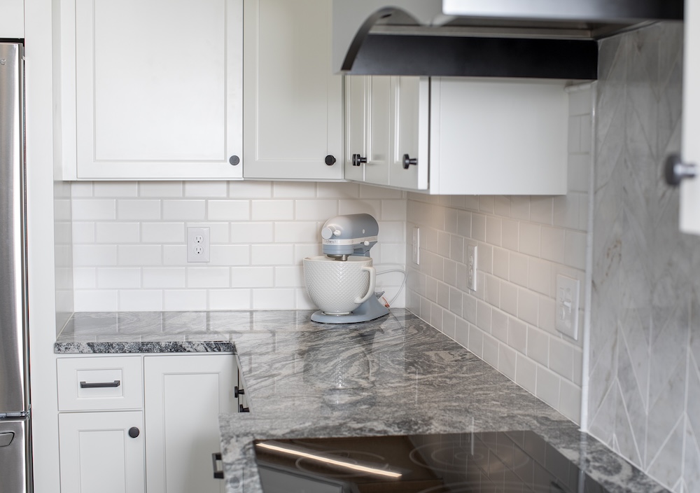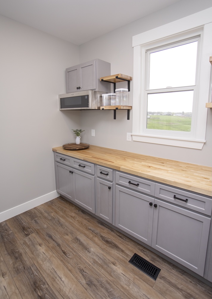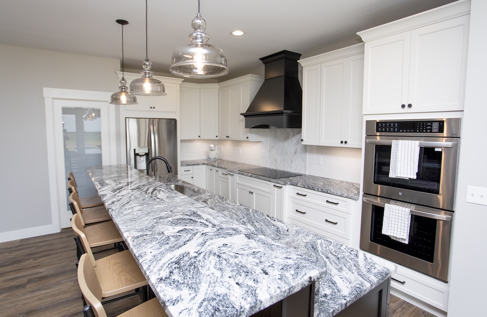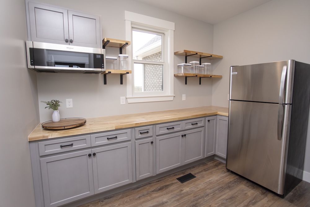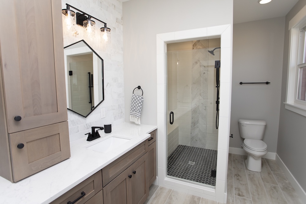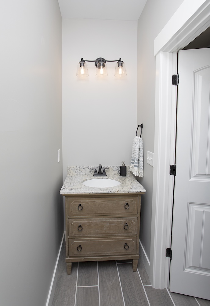 Bell Project Kitchen Cabinetry: Fabuwood – Galaxy Frost, Galaxy Pitch Back Countertops: Viscount White Granite Pantry Cabinetry: Fabuwood – Galaxy Nickle Jack and Jill Bathroom Cabinetry: Fabuwood – Galaxy Horizon