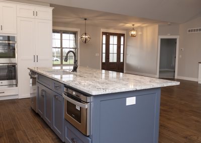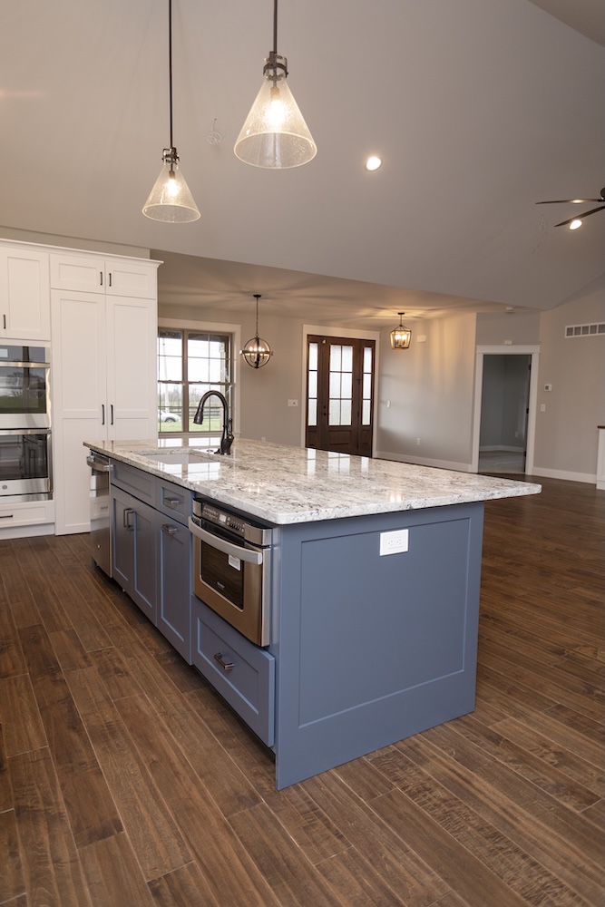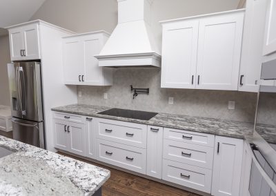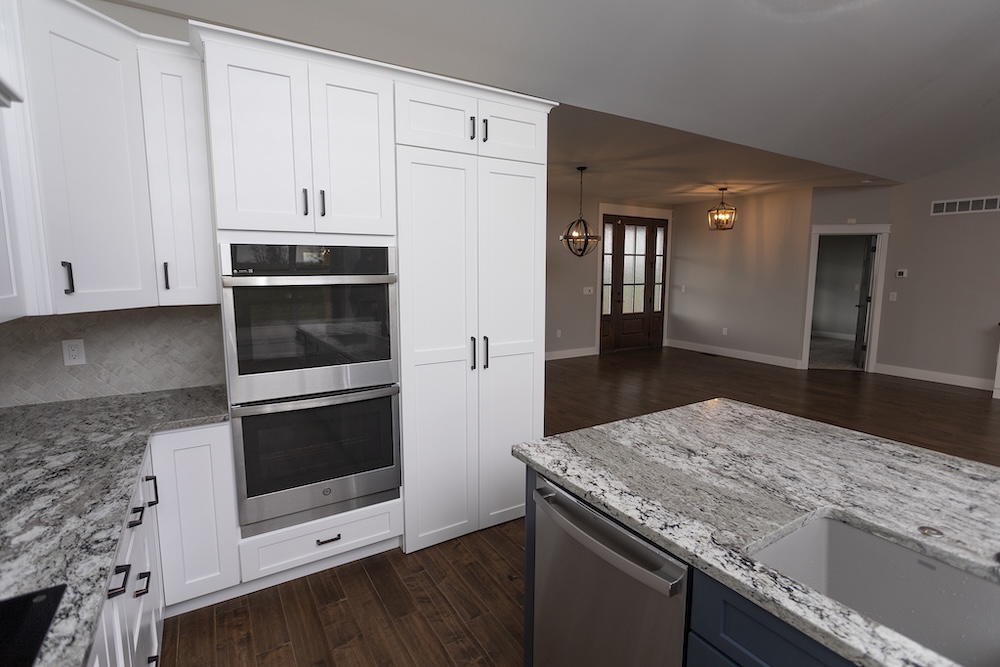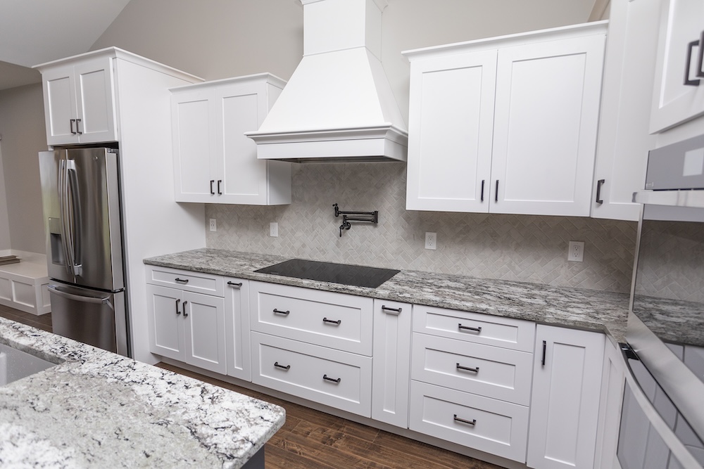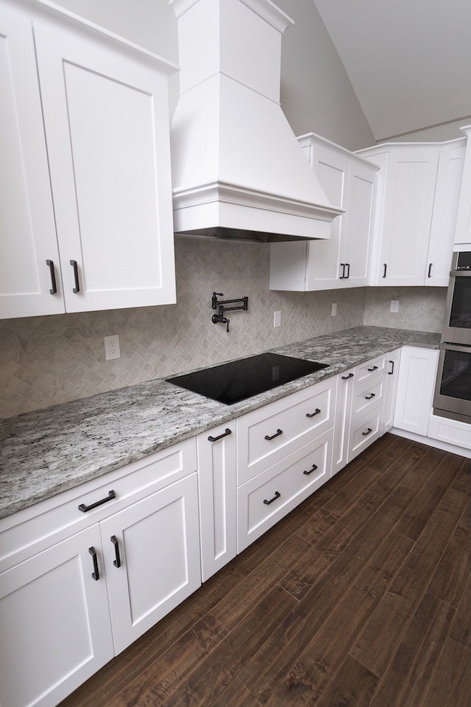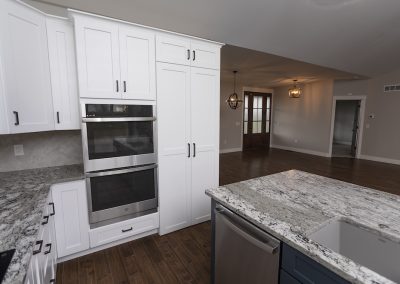 Frilling Project Kitchen Cabinetry: Island – Fulton Shaker Essential Series; Color – White Cap Perimeter – Fulton Shaker Essential eries; Color – Great Lakes Owners Bathroom Cabinetry: Fabuwood – Onyx Horizon Hall Bathroom Cabinetry: Fabuwood – Galaxy Horizon