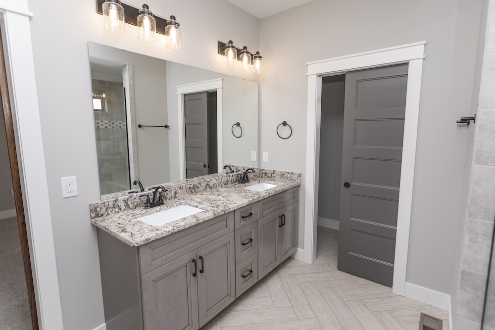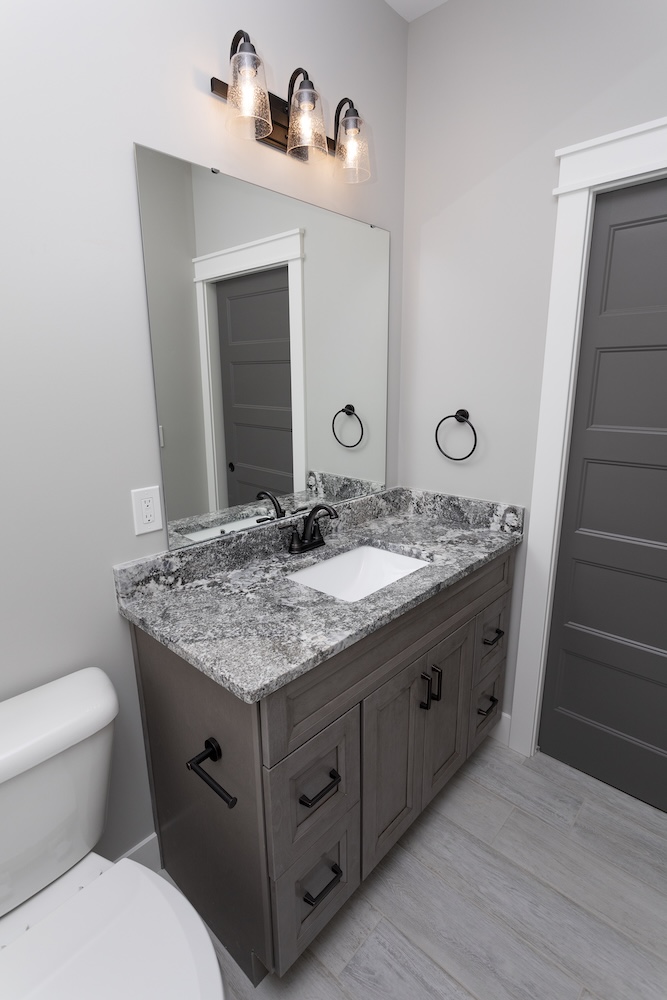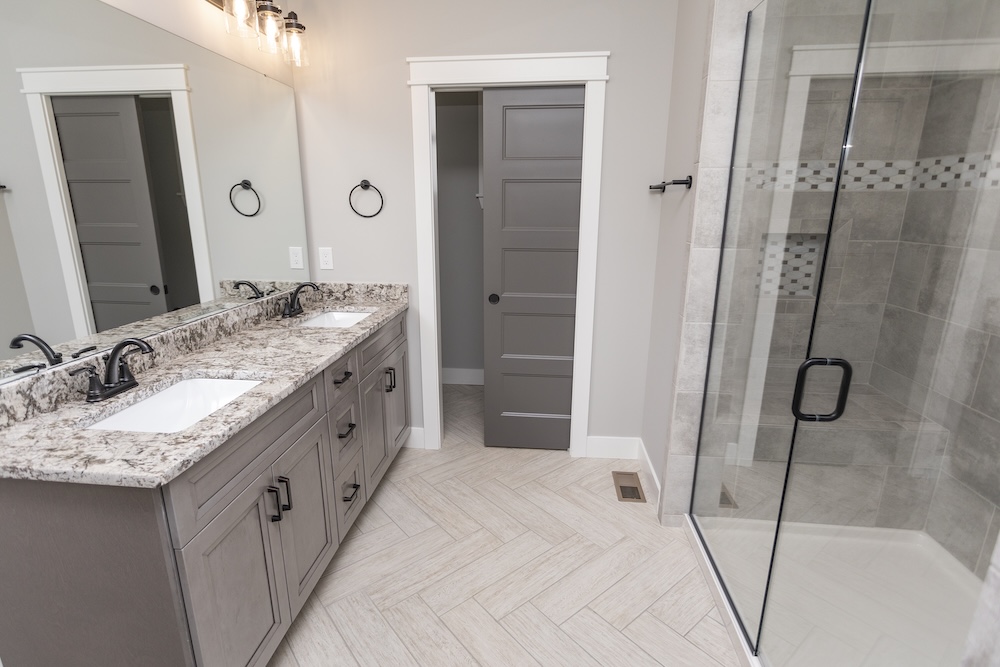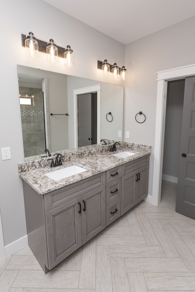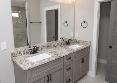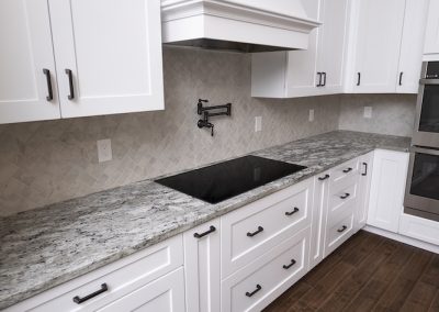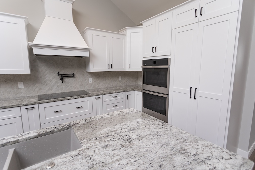 Frilling Project Kitchen Cabinetry: Island – Fulton Shaker Essential Series; Color – White Cap Perimeter – Fulton Shaker Essential eries; Color – Great Lakes Owners Bathroom Cabinetry: Fabuwood – Onyx Horizon Hall Bathroom Cabinetry: Fabuwood – Galaxy Horizon