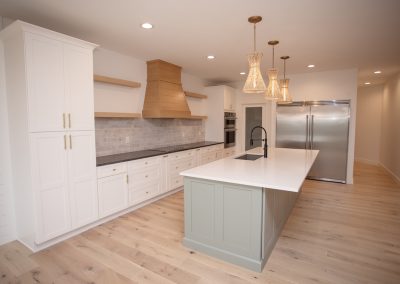 Countertops: Perimeter – Steel Grey Leather Granite; Island – Byzantine Quartz