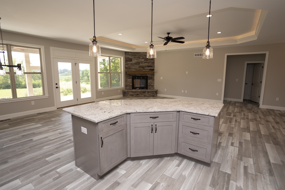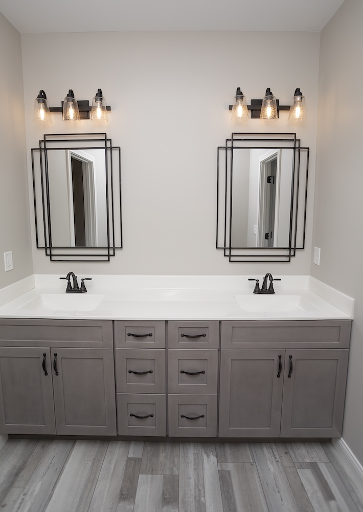 Grow Project Kitchen Cabinetry: Fabuwood – Galaxy Horizon Countertops: Ivory Silk Granite Owners Bathroom Cabinetry: Fabuwood – Galaxy Horizon Powder Bathroom Cabinetry: Fabuwood – Galaxy Frost