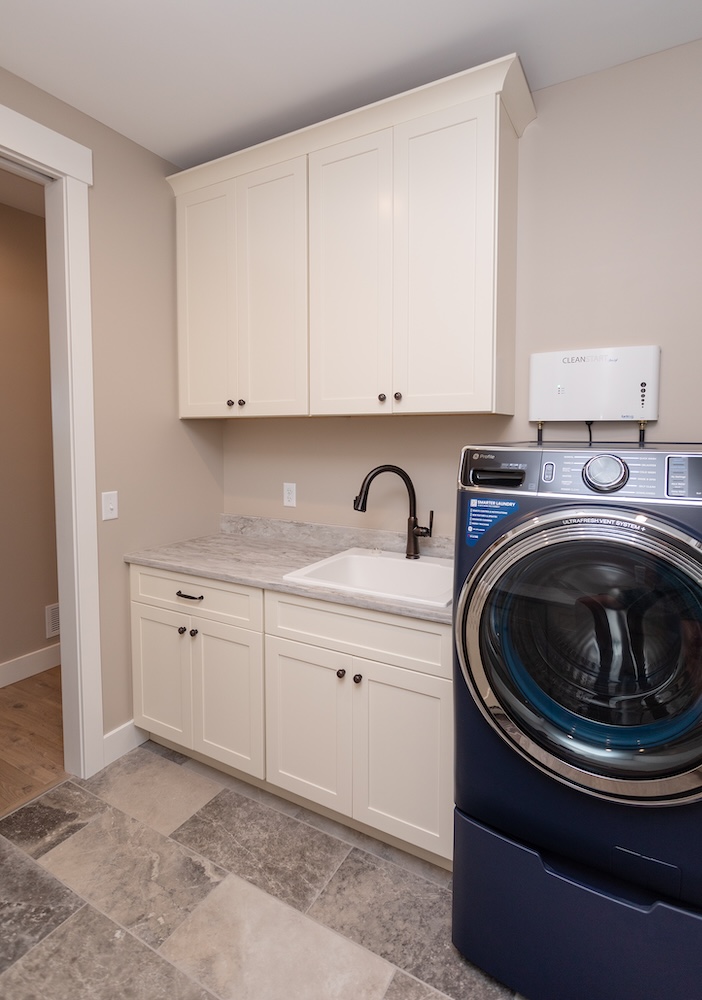 Cabinetry: Perimeter – Sole Design Louden, Alabaster color; Island – Sole Design Louden, Walnut color